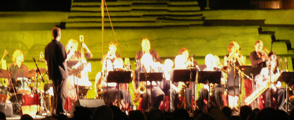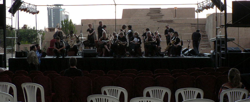 The sound check for the gig was pretty challenging—the music stands and the electric piano had not yet arrived, the lighting was still being set up and it took a long time to get the sound system adjusted correctly. To their credit, the Peruvians accommodated our explanations in wobbly Spanish about our need to hear ourselves correctly, and they worked hard to make things right. When the concert began, the sound was excellent, the lighting was good, and as I looked behind me, I could see a light-show projected onto the ancient ruins behind the stage.